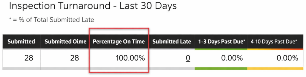 Turnaround time is the number of hours or days it takes you to complete and submit an inspection based on the due date assigned in InspectorADE.